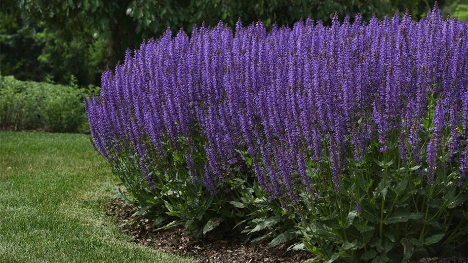 Salvia ‘Blue by You’ is notable for improved branching, which has produced up to five repeat blooming cycles throughout the spring and summer seasons when spent flowers have been removed. Blooms up to two weeks earlier than other varieties for more color at retail and a longer selling season. A hybrid between S. nemorosa and S. pratensis, it has excellent winter hardiness as well as heat tolerance. Zone 4b-9a.