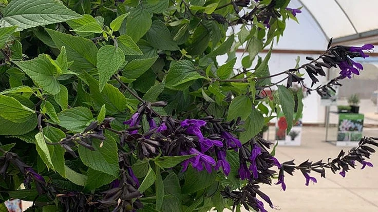 The breeder says this is the world’s first hanging basket salvia introduction, and the dark blue-purplish blooms dotted with black calyx will be a guaranteed conversation starter in the landscape. It was selected for improved branching habit, which limits climbing and spreading. That also results in a tighter, more rounded habit throughout the season. The pitcher-like blooms are a favorite of hummingbirds and other pollinators, too.