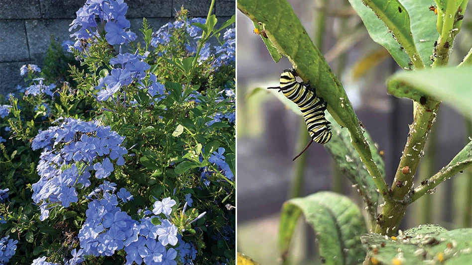 Most people are not spraying insecticides targeting bees and butterflies. However, many of the most effective insecticides are systemic and show up in various plant parts. Thus, consumption of insecticide-contaminated plant material is the main way that pollinators are exposed to insecticides. Bees are at risk of insecticide exposure from consuming contaminated nectar and pollen gathered from the flowers of treated plants. Many pollinator-friendly ornamentals are popular because they are host plants for butterflies. Butterflies and moths are more challenging to protect because they may consume contaminated nectar as adults but also leaf material as caterpillars. Since most key pests also feed on leaf material, this can create a conflict between controlling foliage-feeding pests and foliage-feeding butterflies.
