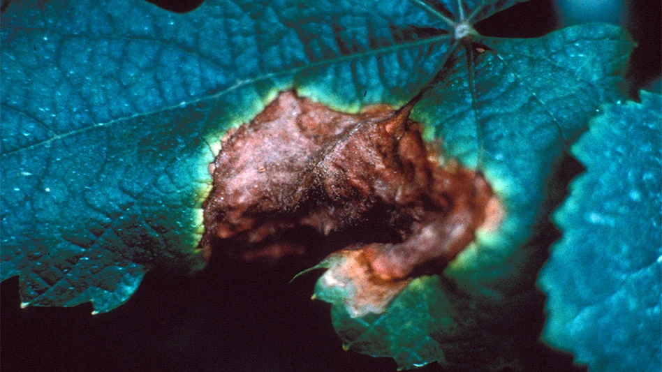 Botrytis is a fungus that can cause leaf spots, petiole blighting and stem cankers on many different annuals and perennials. It will produce large masses of spores that are most often called “gray mold.” These spores or conidia will be spread on wind currents and can travel from infected to uninfected plants in that manner. The spores can live for upwards of 21 to 24 days before they germinate on a plant.