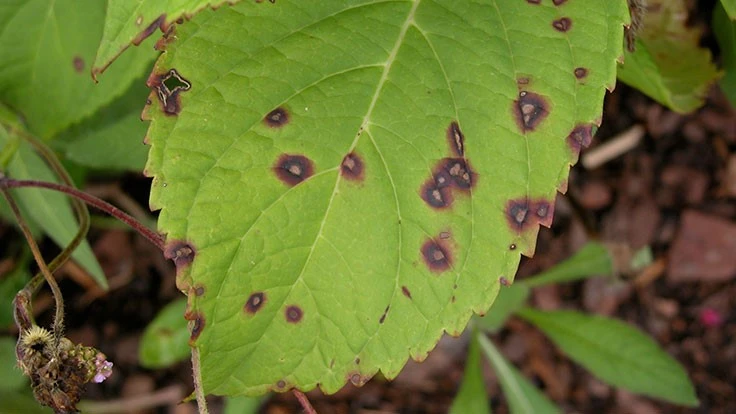 This common disease can defoliate and discolor hydrangeas in the nursery.