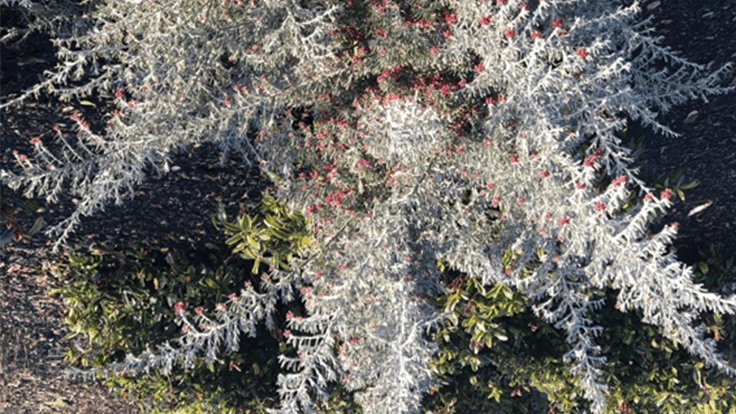 Grevillea can be generally characterized as evergreen shrubs, but there are groundcover forms as well as some tree species that can reach over 100 feet high. For USDA Zones 8-10, there are a plethora of stunning forms of Grevillea. In Zone 7, the choices are a bit more limited but there are nonetheless some fabulous flower forms. Grevillea victoriae is hardy in Zone 7 and has beautiful frilly orange flowers. I visited the Gerdemann Botanical Preserve in Yachats, Oregon, in mid-February this year and the G. victoriae was blooming nicely. We are growing Grevillea lavandulacea ‘Penola’ and G. ‘Noellii’ in our landscape at Little Prince of Oregon Nursery where we’ve had two winters in a row with low temps staying above 20°F and both of these plants are doing beautifully. I have a G. rosmarinifolia in my landscape in Albany, Oregon, that has gone down to 8°F with no damage. Perhaps the hardiest is G. australis, which handles temperatures of 0-5°F without damage. It blooms in early spring and has delightfully sweet-smelling diminutive flowers.