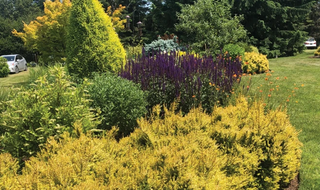 I was invited to go on a tour of seven gardens in the Portland, Ore., metro area in early June. The tour is sponsored by the Association for Northwest Landscape Designers, and this day was a “pre-tour” for local media folks and garden designers. All the gardens are at private homes, and each offered a unique vision and collaboration between designer and homeowner. One key element of garden design that I appreciated seeing in these landscapes was the use of chartreuse and yellow foliage colors to create visual anchor points for our eyes to move between. Two of the gardens designed by Perennial Partners, founded by award-winning designer Lucy Hardiman, made wonderful use of Lonicera nitida ‘Twiggy’, which is a plant I’ve been enamored by for many years.