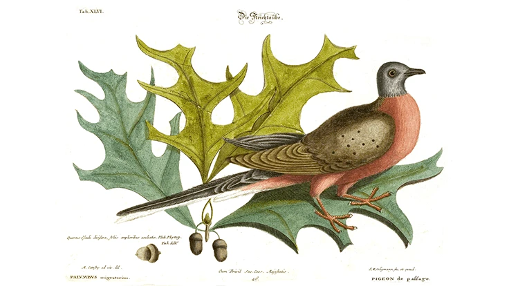 In May 1850, Simon Pokagon was camping at the headwaters of Michigan’s Manistee River. He later wrote the sound he heard seemed as if “an army of horses laden with sleigh bells was advancing through the deep forests towards me.” “As I listened more intently, I concluded that instead of the tramping of horses, it was distant thunder; and yet the morning was clear, calm and beautiful.” The mysterious sound came “nearer and nearer,” until Pokagon deduced its source: “While I gazed in wonder and astonishment, I beheld moving toward me in an unbroken front millions of pigeons, the first I had seen that season.” Passenger pigeons were perhaps the most abundant bird species on the planet. In 1871, their great communal nesting sites had covered 850 square miles of Wisconsin’s sandy oak barrens — 136 million breeding adults, naturalist A.W. Schorger later estimated. Wow, can you imagine millions of those birds flying overhead?