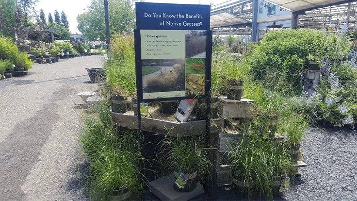 Additional educational materials include a two-page Native Grass Guide that can be printed and attached to the store sign or poster.
