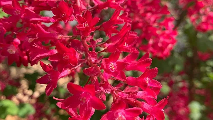 R. sanguineum is a deciduous multi-stemmed shrub growing 8-10 feet tall in an upright, vase shaped to rounded habit. The leaves have three to five lobes and are deeply veined so that they almost appear crinkled. The timing of the red blooms is perfect for early foraging hummingbirds and other pollinators. It grows in full to partial sun in well drained soil. It is drought resistant once established. One selection that I’m particularly fond of is R. sanguineum ‘Vampire’, introduced by Dancing Oaks Nursery in Monmouth, Oregon. It has 8-inch-long pendant racemes of bright crimson flowers and is extremely floriferous. ‘King Edward Vll’ is also a noteworthy cultivar which received the prestigious Royal Horticultural Society Award of Merit and the even more prestigious “Great Plant Pick” by the Elisabeth Miller Botanical Garden in Seattle. You can’t go wrong with either of these beautiful shrubs.