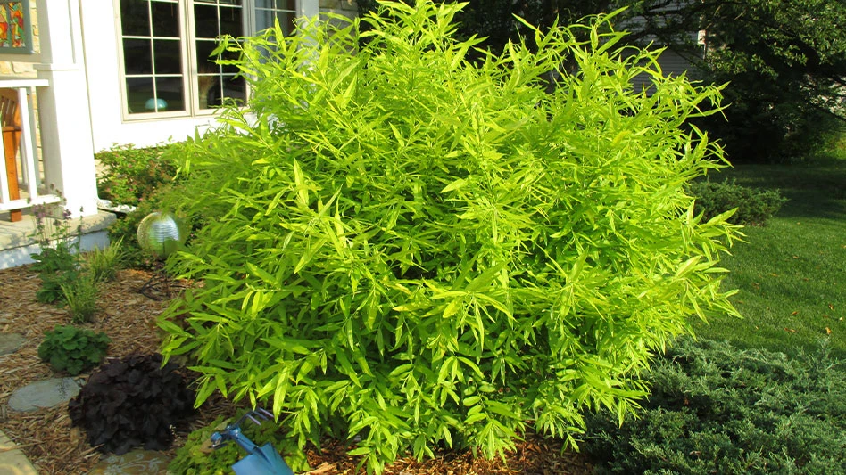 I like shrubs and trees with golden foliage. The bright luminosity and attention that a golden-yellow plant adds to the landscape is indisputable. When I first observed ‘Golden Sunshine’ willow in 2012 at Olbrich Botanical Gardens in Madison, Wisconsin, I saw it from 50 yards away. It was placed in a nexus of paths where both the bright golden coloration and layered texture were very conspicuous. It literally drew me over to find a label and I was sold. The elegant, narrow, lance-shaped leaves were a bright yellow with no leaf scorch on that hot summer day. I’ve since grown many selections of this shrub and enjoy the “splash of sunshine” that it provides in any sunny location.