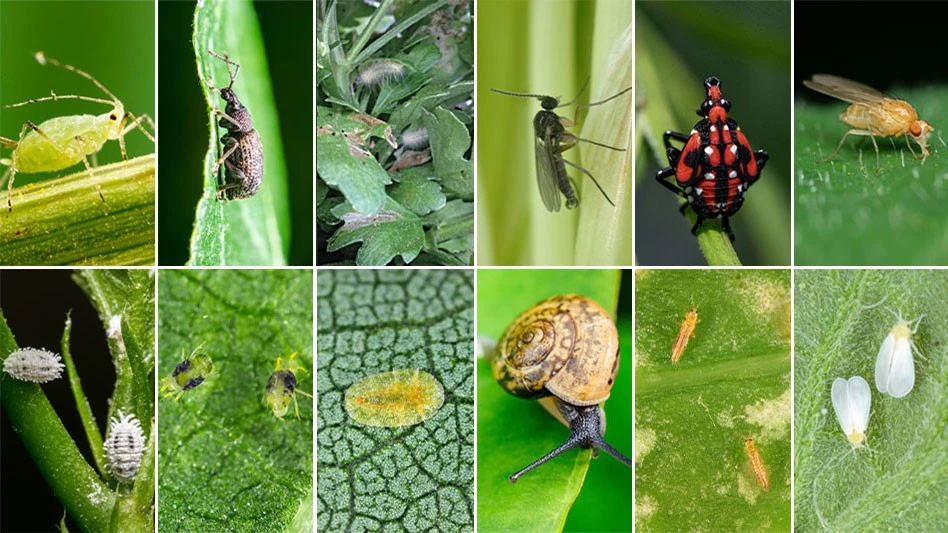 Slugs and snails can become greenhouse pests when the humidity is high. Slugs feed mainly at night. They prefer cool, moist hiding places during the day. Slugs rasp on leaves, stems, flowers and roots. They produce holes in the leaves or just scar the leaf surface. Small seedlings are especially vulnerable to these pests. Silvery slime trails are evidence of snail and slug infestations.