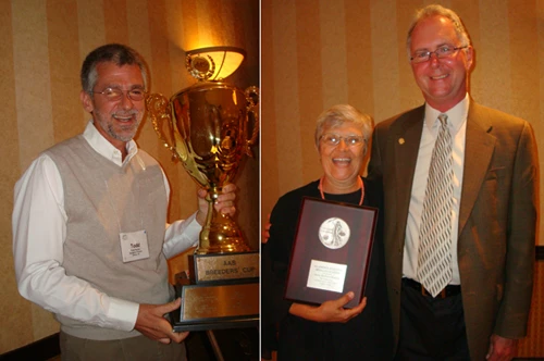 Pictured: At the All-America Selections summer meeting Todd Perkins of Syngenta Flowers received the Breeders Cup Award. AAS emeritus executive director Nona Koivula was presented the Medallion of Honor by AAS president Jim Nau of Ball Horticultural Co.