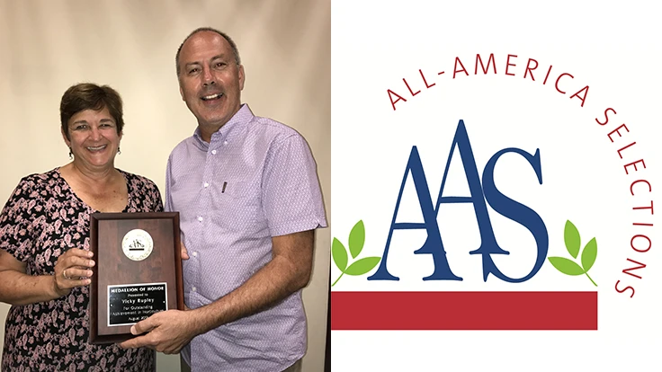 The AAS Medallion of Honor is presented to an individual who has given a lifelong dedication to the advancement of horticulture. All-America Selections announced that the 2017 Medallion of Honor recipient is Vicky Rupley of Harris Seeds in Rochester, New York. Vicky started her career by attending the University of Rhode Island, including a summer internship pollinating tomatoes at Harris Seeds. She then went on to UC Davis in California and received a Masters in Agriculture Education earing her credentials to teach and lecture on vegetable crops. In 1985 Vicky transitioned to the industry, working at Harris Moran Seed Company, Ball Seed, Sluis & Groot and Harris Seeds where today she serves as the company’s Executive Vice President. In addition to her professional career, Vicky has generously given of her time as a member of the National Garden Bureau Board of Directors from 1995-1998 then as a member of the All-America Selections Council of Judges beginning in 2006. While serving as a judge, Vicky then joined the AAS Board of Directors as a Director, Vice President, President, Past-President from 2007-2015.
