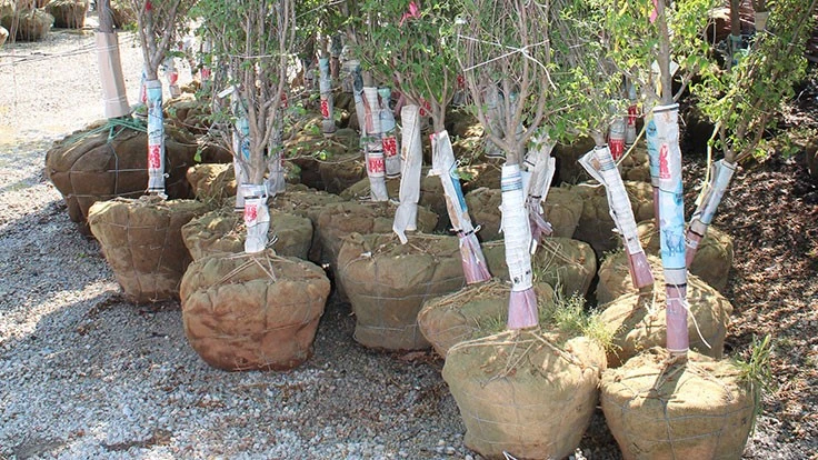 1. You’ll need to dig a saucer-shaped hole. If you can, rototill an area five times the diameter and as deep as the root ball. The prepared soil will make the hole easier to dig and encourage root growth. Measure the depth of the root ball to make sure the root collar will be at or a little above ground level when your tree is planted.