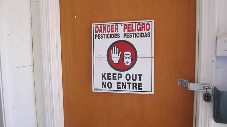Jill Hoffmann inspects a greenhouse for safety risks.
