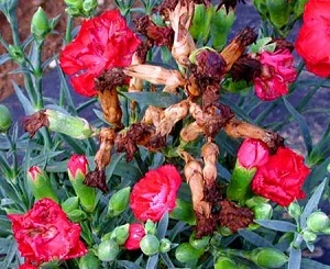 Botrytis flower blight on dianthus. Photo: Cheryl Smith, Univ. of New Hampshire