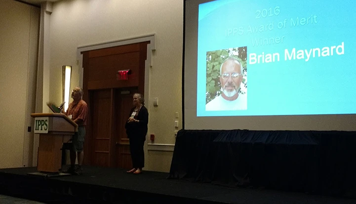 HARTFORD, CT -- Before a crowd of about 150 people, the International Plant Propagators Society Eastern Region presented the 2016 Award of Merit to Brian Maynard, and the 2016 Fellow award to Ron Strasko. The awards were presented at the IPPS Eastern Region annual meeting, which took place Sept. 22 in Hartford, Conn. The Nominating and Recognition Committee ranked many nominees based on qualifications and the winners were determined by highest scores.