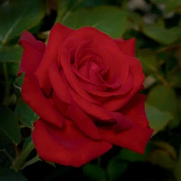 The newly introduced 'Drop Dead Red' is also a Floribunda with a medium height and medium stem length. Its color is dark red velvet and its growth habit is upright to slightly-rounded. The 'Drop Dead Red' has a double, formal flower form that is classically pointed and shapely with a mildly sweet fragrance.