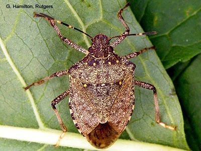 The brown marmorated stink bug (Halyomorpha halys) has become a crop pest and household nuisance throughout Maryland and adjacent states, reports Univ. of Md. Extension. Native to Asia, the stink bug is thought to have arrived through shipping material and is now established throughout the Mid-Atlantic and parts of the West Coast. This invasive species is an excellent hitchhiker and has entered over half of the contiguous U.S.