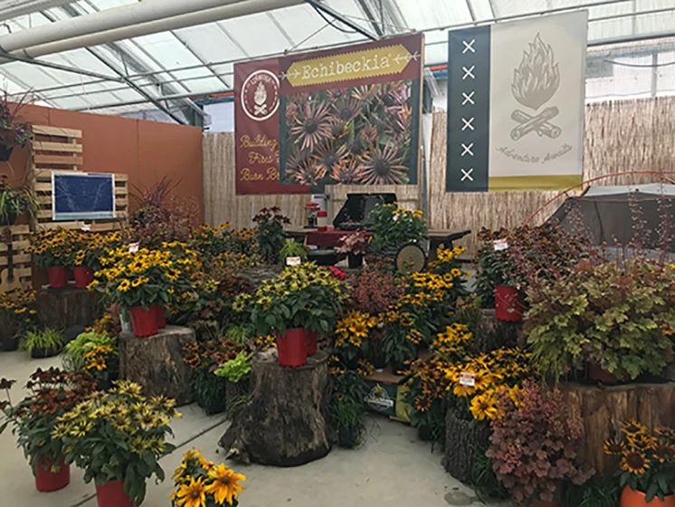 Pacific Plug & Liner transformed its facilities and created Camp Perennial, complete with logs, boats and oars and other summer sleepaway-themed items to highlight its various perennial offerings, including grasses, hellebore and echibeckia (see photo). "Campers" could collect "merit badges" along the way as they toured the various perennial categories.