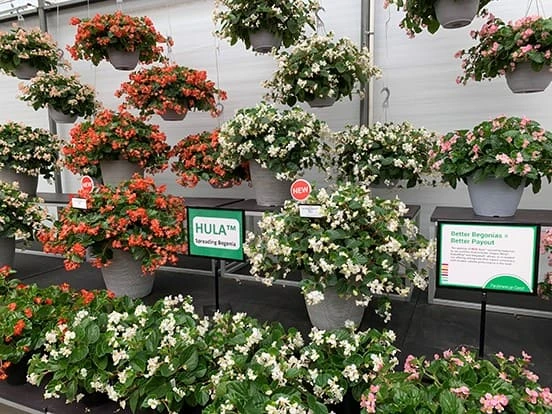 The first spreading begonia, Hula F1 Spreading Begonia will fill landscape space well. Since plants are so voluminous, gardeners can use fewer plants to fill landscapes and containers. Its trailing habit is perfect for baskets and containers. The series is daylength neutral and is the earliest interspecific begonia to flower.