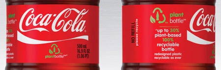Coca-Cola Co. has announced that beverages in its PlantBottle packaging are beginning to arrive on store shelves in select markets throughout the world. The goal of the company is to produce 2 billion of the special PET plastic bottles by the end of 2010. PlantBottles are made partially from plants, reducing the company's dependence on petroleum. Another benefit is that the bottle is 100% recyclable. Preliminary research indicates that from the growing of the plant materials through to the production of the resin, the carbon footprint for the PlantBottle is smaller than for bottles made with traditional PET.