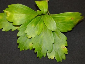 Symptom included small to larger necrotic lesions with well-dileneated margins on the leaves. All of the necrotic lesions had distinct, diffuse yellow haloes. No lesions were observed on the stems and no defoliation had occurred. The overall color of the pachysandra leaves were normal and dark green.