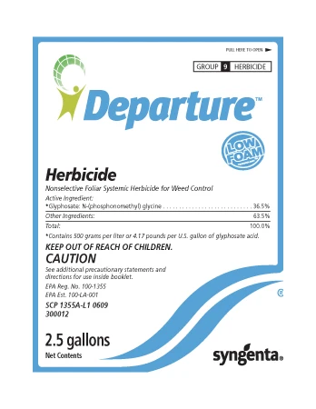 The product is a highly concentrated, liquid formulation of glyphosate for broad-spectrum, systemic and non-selective control of more than 170 emerged annual and perennial grass and broadleaf weeds. Departure is also labeled for a broad range of turfgrass applications including turf renovation and winter weed control in dormant bermudagrass.