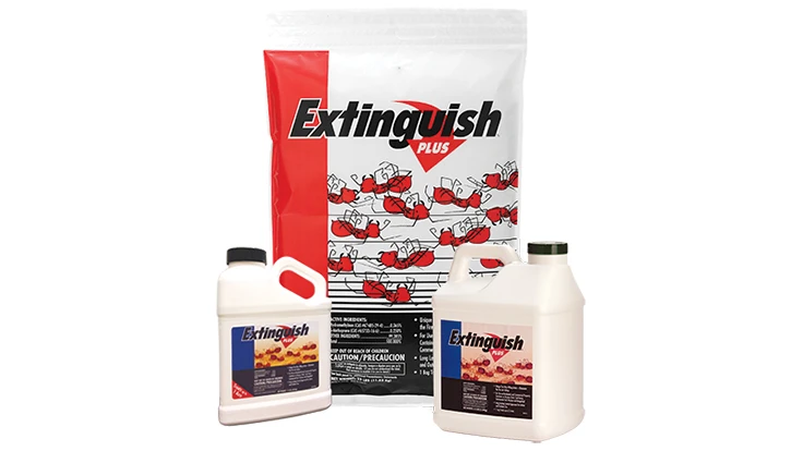 The adulticide, Hydramethylnon, in Extinguish® Plus bait starts killing worker ants soon after ingestion. Noticeable reduction in the number of active workers is seen within a week. The insect growth regulator (IGR), (S)-methoprene, sterilizes the queen to prevent rebound and mound movement. Colony reduction begins immediately and colony elimination may be seen within 2 weeks. Extinguish® Plus bait features a 1.5-lb usage rate, and the product is available in 1.5-lb, 4.5-lb and 25-lb sizes.