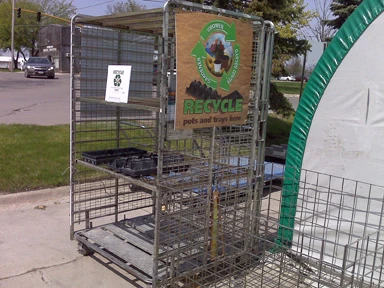 Pictured: Floral Plant Growers has initiated a consumer plastic container recycling at various retail outlets throughout the Midwest.