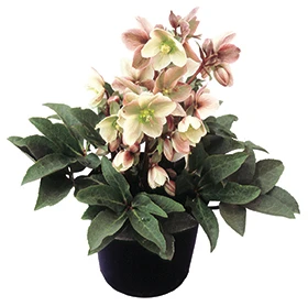 Helleborus Ivory Prince (‘Walhelivor’) is noted for its crop uniformity, vigorous growth rate, tidy plant habit and highly visible, long-lasting flowers. The ivory and green-striped blossoms are flushed with pink which deepens to rose. ‘Ivory Prince’ exhibits prolific flowering with six spikes of twelve flowers, on a 1-gallon container plant at 2-years-of-age. It is readily propagated in vitro and roots easily from stage III starts.