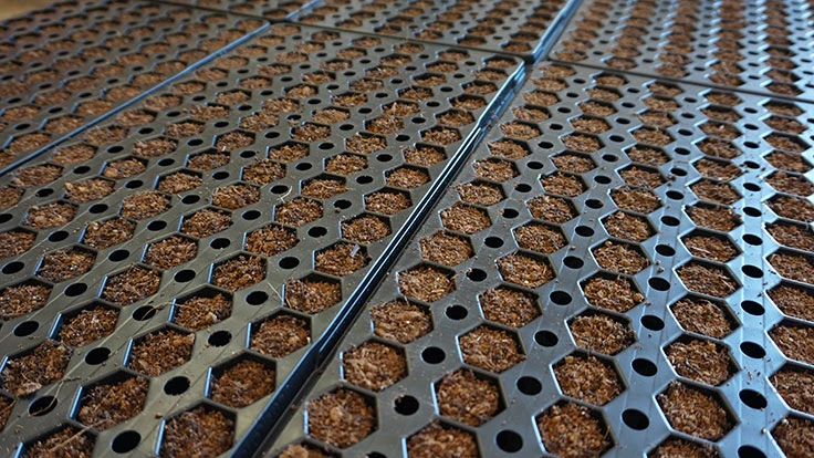 Basically, we prefill plastic trays, shrink wrap them, palletize them and send them to a grower. They are moist; they are ready to stick. They are pre-dibbled. So the grower can take it off the pallet and take it to their sticking line, whether that’s automated or on the bench and they can stick into it immediately.