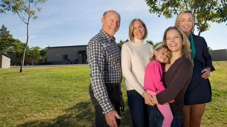 Non Toxic Irvine board members stand near a track at Canyon View Elementary School. From left, Bob Johnson, Kathleen Hallal, Ayn Craciun (with daughter Nina, 2) and Kim Konte are working together to get government agencies and homeowners associations to stop using synthetic pesticides in favor of organic methods. Photo: MINDY SCHAUER, OC REGISTER STAFF PHOTOGRAPHER