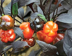 The patented Lil’ Pumpkin produces black foliage and orange pumpkin-like fruit, and the patent-pending Pepper Jack bears greenish-black foliage and a mix of both orange and black, small, cone-shaped fruit, similar to candy corn.