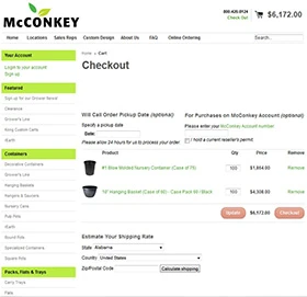 Up-to-date inventory levels are displayed for each product so customers can see what’s in stock. They can also request to receive an email notification when a backordered item is available again. The company offers products from manufacturers such as T.O. Plastics, East Jordan Plastics, Sun-Gro, A.T. Plastics, Nursery Supplies and dozens more, including McConkey’s manufactured and imported products.