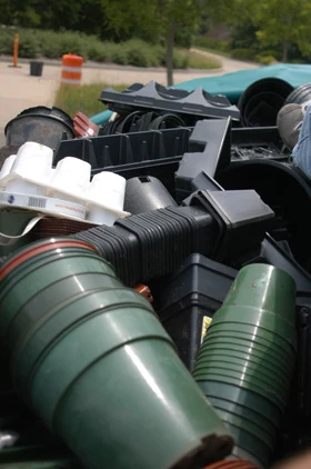 Plastic is granulated on-site into chips that are easily transported for recycling. These chips are sold to manufacturers for converting into garden pots, lumber, pallets and a variety of other usable products. The Missouri Botanical Garden’s role is to reduce as much of this material headed to landfills as possible and to find an alternative for its use by diverting it back into other products.