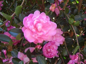 Camellia 'Susy Dirr' (C. hiemalis) is hardier than most of its cousins. It flowers from September-October, featuring voluptuous, bubble-gum pink blooms. C. hiemalis is often called the dwarf sassanqua. There are reports of 'Susy Dirr' being hardy in USDA Hardiness Zone 6, but it is definitely hardy to Zone 7.