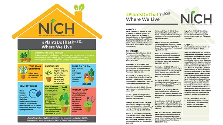 “We envision this series of infographics to be used as tools to promote the power of indoor plants,” says Debbie Hamrick, NICH Economic Committee chair. “We want to raise awareness of the positive benefits of plants in our everyday lives.”