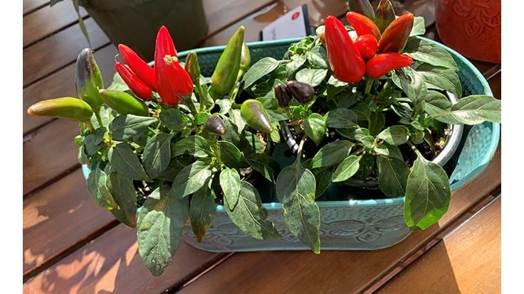 This new pepper shows chocolate and red stripes as it matures, giving it a unique ornamental aspect, says Luther McLaughlin, general manager, PanAmerican Seed. With variegated white and green leaves, it makes a statement indoors. The sweet fruits can be eaten at any stage of ripeness.