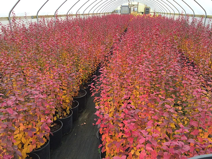 Selected at JLPN from a seedling block for its unique foliage and upright character. Bright and consistent fall color of red, orange, burgundy and yellow, based on climate and location. Prefers hot, humid climates and is excellent for growing in containers in greenhouses. Superior candidate for shrub or hedge growing.