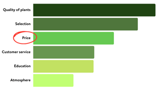 Consumers who shop at big-box stores, independent garden centers and other outlets all value plant quality and selection the most. But those who shop mainly at independent garden centers value customer service above price, while big-box shoppers consider price more important.