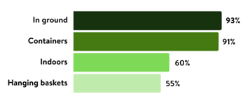 Nearly as many consumers planted in containers as they did in the ground this past year, with those planting in containers increasing about 10 percentage points over last year’s survey.
