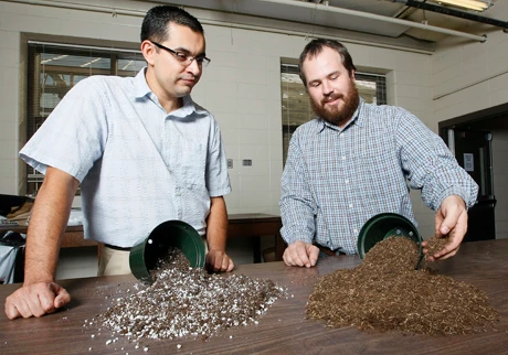 Pictured: Purdue Univ. researchers Roberto Lopez (left) and Chris Currey have found rice hulls in growing mixes don’t impact growth regulator effectiveness.