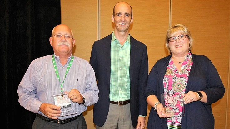 Photo: Outgoing RISE Governing Board members were recognized during the association’s annual meeting Sept. 23-26, 2018, in Amelia Island, Fla. From left: Dan Stahl who served as Governing Board chair from 2014-16, OHP, Inc.; Aaron Hobbs, RISE president; and Stephanie Jensen, outgoing Board member, BASF Corporation. Photo courtesy of RISE