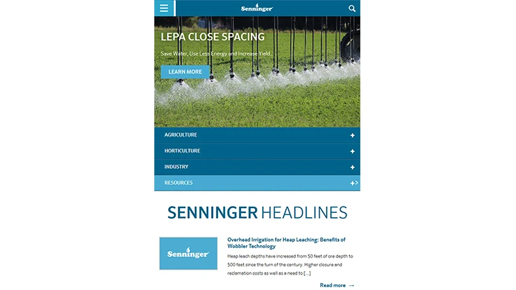 Senninger’s new website is designed to meet user’s needs for better information on irrigation products and solutions for agricultural, horticultural, and industrial applications.