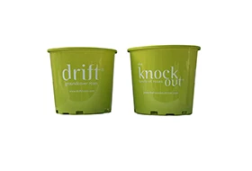 The newly redesigned chartreuse pot will first be seen on the Knock Out and Drift rose lines.