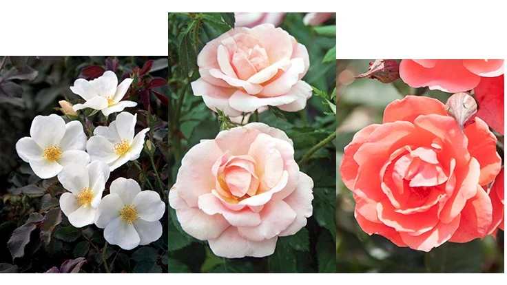 Photos: (L-R) White Knock Out, Peachy Knock Out, and Coral Knock Out, courtesy Star Roses and Plants