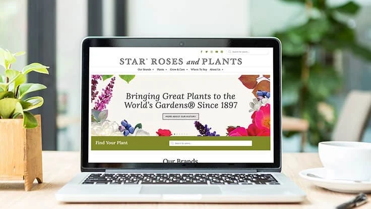 The site also showcases Star Roses and Plants’ new, simplified logo. “While we were in the process of building the website, we realized that our logo needed a refresh as well,” says McKean. The new logo is a subtle update that matches the clean, refined look of the website.