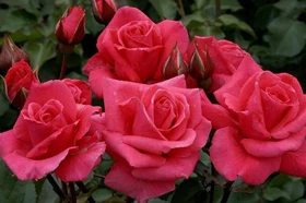 Survivor is an own root rose with a fresh, fruity fragrance. The scarlet buds open to showcase a vibrant red, hybrid tea shaped bloom that perfectly contrasts with the bright disease resistant foliage.