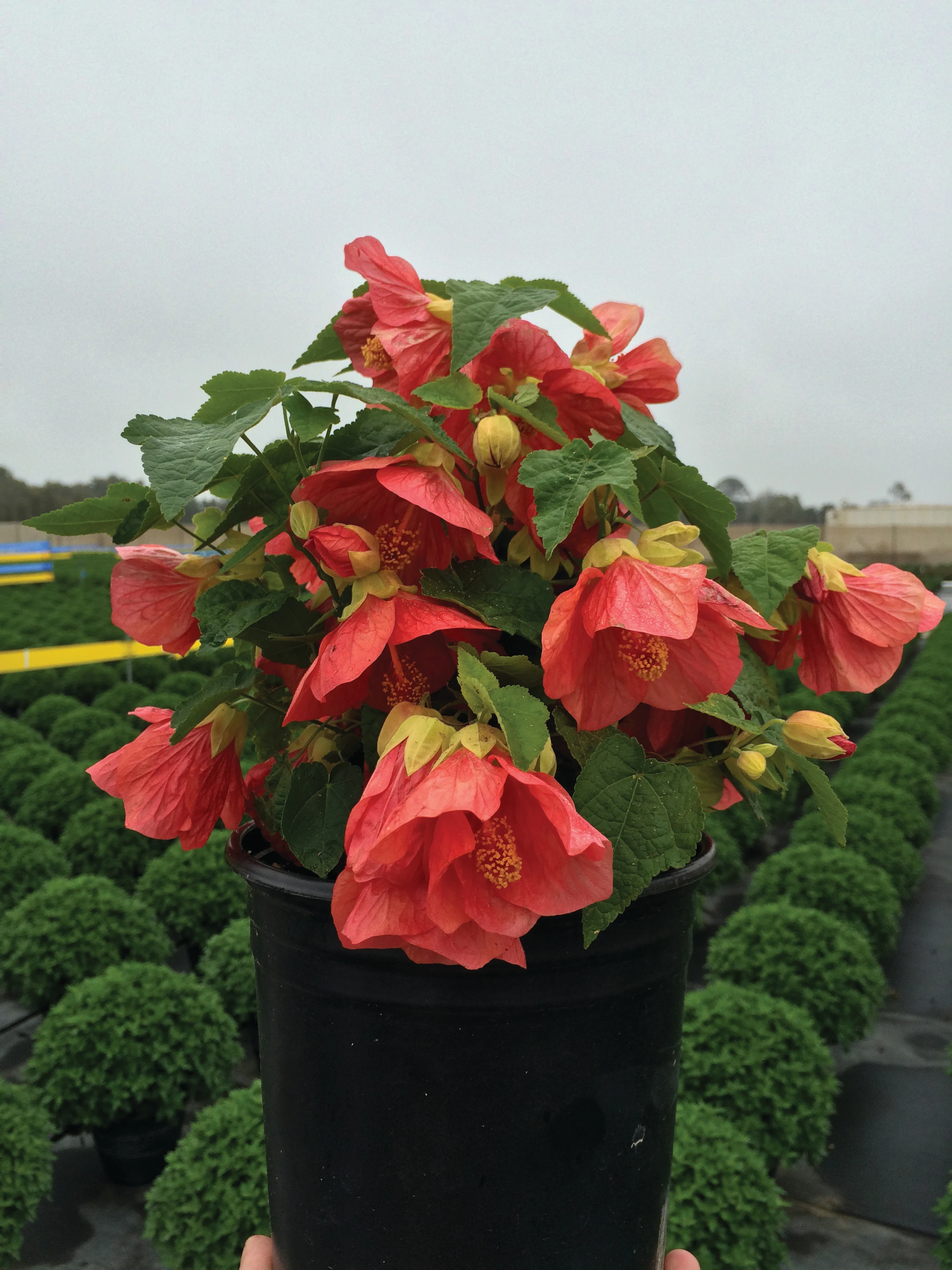 Abutilon hybrida PATIO LANTERN from PlantHaven boasts large, bell-shaped blooms in appealing, watermelon tones. PATIO LANTERN is heat and drought tolerant once established and has a long blooming season from summer to fall.