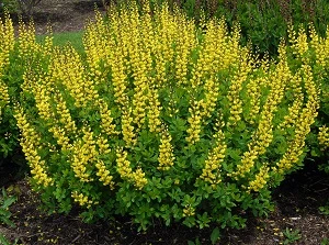 This stunning false indigo was selected for its amazing profusion of vibrant lemon-yellow flowers borne on charcoal-gray-tinted stems, all dramatically displayed above the medium to dark green foliage. Plants bloom for three weeks in mid-spring. ‘Sunny Morning’ is a vigorous plant with many stems, and its dense, uniformly broad-rounded habit is maintained all growing season. Best grown in full sun on well-drained, acidic to neutral soils. Vigorous and garden adaptable! Grows to 3¼' tall by 5' wide. Developed at Chicago Botanic Garden.