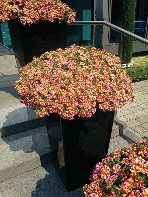 Calibrachoa Candy Bouquet from Vivero Internacional is an early-flowering variety shines out of the crowed with its fluorescent magenta accents crossed with sunny yellow starbursts.
