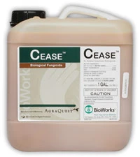 Based on a naturally occurring, patented strain of Bacillus subtilis (strain QST 713), Cease  from BioWorks Inc. can be used as a foliar spray and soil drench on ornamentals, trees, shrubs, flowering plants and greenhouse crops and vegetables grown under cover. It is a broad spectrum biofungicide targeting common fungal and bacterial diseases such as Botrytis, Powdery Mildew, Leaf Spots and Pseudomonas, Xanthomonas, Erwinia.